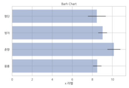 가로 방향으로 바 차트를 그리려면 barh 명령을 사용하면 됩니다.